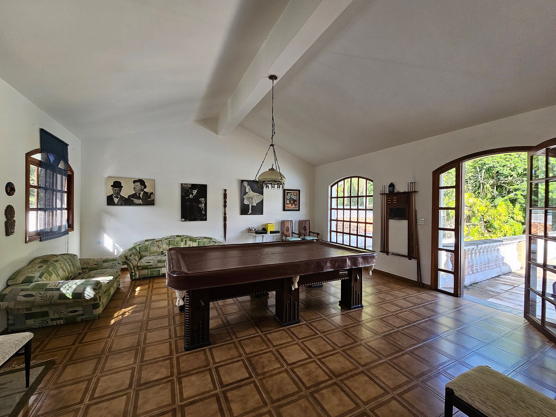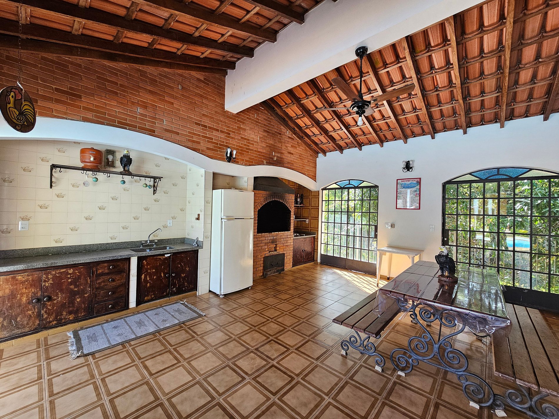 Ampla área gourmet com churrasqueira e salão de jogos.